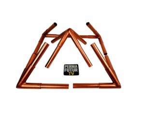 Pyramide en cuivre recouverte d’un ruban aluminium dans le potager